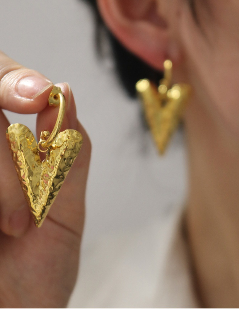 Stainless Steel 18K Gold Love Texture Ear Studs